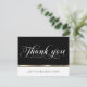 Elegant business corporate black and gold THANK YOU card. Personalize by adding your own text and logo. Back of card has room to add company name, address and website. Perfect for purchase orders, business to business, or any other thank you occasion.