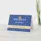 This colorful design has the letters of the text "HOLIDAY greetings" in blue, with the I of HOLIDAY shaped like a candle with a bright flame. The background is dark blue with a scattering of pale blue and golden colored stars.