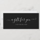 Simple and elegant script black and white gift certificate. This elegant script Gift certificate fits perfectly within a standard #10 business envelope. Perfect for your brand and business.