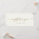 Simple and elegant minimalist script ivory and gold gift certificate. This elegant script Gift certificate fits perfectly within a standard #10 business envelope. Perfect for your brand and business.