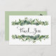 The Thank You design has walls of assorted greenery covers across the front at top and bottom. This watercolor also shows tiny white flowers that are scattered in each line. The Thank You is a hand painted look. The back has a background of popular green colour and room for your company's message. This would also fit for thanking your employee as well.