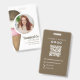Make a lasting impression with this professional business corporate standard small business badge, featuring a modern photo template for a sleek and polished look. Designed for company office employee name tags, this badge includes a casual QR code for social media connections. Perfect for a modern event, festival, or fair, it's ideal for an ice cream cone shop, parlour, catering truck, caterer, or restaurant. With an elegant chic typography template, this cute work identification security badge blends style and functionality.