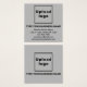 Square profile card that you can customize to put your business name. You can include it in your marketing materials to advertise your business or promote your brand name to customers. Customize it and include it in materials that you will use to build brand name awareness. You can also use it as an accessory of your packaging material. Colour is grey and font colour is black. To customize this profile card, upload your business logo, type your business or company name, phone number, e-mail and website or social media page. Please check the appearance after uploading logo and typing texts. If the appearance is pleasing to you, you can place your order now. If you need to resize and move the logo and texts to fit on this profile card or on other shapes and sizes that you will choose, please change in the design tool. You can also make other changes according to your preference in the design tool such as changing the profile card colour, font colour and font style.