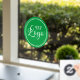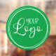 Add your own round transparent PNG graphic branded business logo image on top a bright Kelley green style colour circle to create a promotional window cling.