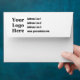 A display image is on the back flap. You can replace the image with your logo. Four lines of display text for your return address and website are next to the display image.