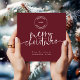 Business Logo Burgundy Red Merry Christmas Square. Available digitally and printed. Contemporary minimalist style for your company festive greetings, Merry Christmas is in an elegant set script in white and the rest of the text you can easily personalise. You can chose any colours for text and background via the customise further option.