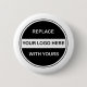 Make your own business logo button in a template including a logo template you can easily replace with yours. Designed as a promotional button to display your brand at special events, corporate meetings, or company parties.