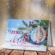 This modern Christmas card features elegant red script calligraphy over a festive Christmas tree, ornament with a beautiful snow backdrop. The greeting, company name and logo can be easily customized to suit your own business. Easy to customize. Happy Holidays!