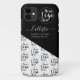 This modern and simple business phone case is perfect for any hairstylist, makeup artist, nail tech, aesthetician, aesthetician, baker, cook, and many more professions. It features a place for your logo at the top, with your name and title on top of a black diagonal cute colour block with a pattern of your logo behind that with a white background. Just replace your logo for the top and then again for the bottom pattern and you'll have a custom and cute way to advertise your business. It's elegant, cute, and stylish.