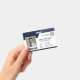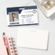 This professional navy blue employee badge features customizable business logo, employee name and title, photo, and a barcode on the front for added functionality, with an optional QR code on the back. Perfect for corporate, retail, or security settings, it combines sleek design with practicality, offering a modern and polished look for your team.