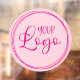 Add your own round hot pink (or other colour) PNG graphic branded business logo image on top a pastel pale pink colour circle.