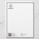 A simple custom business letterhead template in a modern minimalist style with a simple black border which can be easily updated with your company logo and letterhead footer including your company name, address, telephone, email, website and QR Code