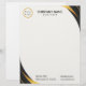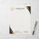Black and gold modern professional business logo letterhead with template fields for name, company name/title, logo (photo or other graphic) and contact information. You can customize the text size, font and colour to suit your own personal preference.
