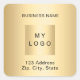 A faux gold looking background, black text. Personalize and add your business name, logo and address or text.