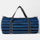 Business Logo Name Striped Blue White Black Duffle Bag is prepared as template to easily replace company logo and company name. It is part of the Blue Business Card Designs & Marketing Items collection. The blue, white, black striped gym bag complements the professional collection as merchandise or promotional gifts.