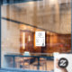 Modern white window cling sign for your business. Upload your logo and QR code for customers to scan for a list of your products, services, prices or other information. Add your business name, open hours or other text in simple typography.