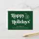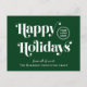 Green corporate Christmas postcard for your customers, employees, affiliates, etc., featuring "Happy Holidays" in stylish white typography, your company logo and your business name in simple modern white typography. On the back, add a personalized seasonal message of appreciation and thanks and input your website address to create a QR code that customers can scan to connect to your online platforms.