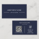 Simple custom corporate QR Code and company logo business card in a modern minimalist style. The template can easily be updated with your QR code, logo and contact information.
