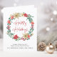 Corporate folded holiday card featuring a watercolor wreath of red and white poinsettia florals and eucalyptus and seasonal greenery. "Happy Holidays" is written in a contemporary red script and you can personalize your greeting and your business' name in simple modern typography. On the inside, add a personalized message of customer appreciation and your corporate logo.