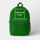 Green backpack that you can customize by typing your business name and uploading your business logo. Bag that you can include in your promotional products, giveaway items or gifts to your customers or clients, a marketing strategy to advertise your business or to promote your brand name. Customizable backpack that you can use to build brand name awareness. Please check the appearance after typing your business name and uploading your business logo. If the appearance is pleasing to you, you can place your order now. If you need to resize and reposition your business name and logo to fit in the template, please adjust in the design tool. You can also change the background colour, font colour and font style in the design tool.