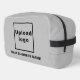 Grey dopp kit that you can customize by uploading your business logo and typing your business name. You can include it in your promotional products, giveaway items or gifts to your customers or clients, a marketing strategy to advertise your business or to promote your brand. Accessory that you can use to build and maintain brand name awareness. Please check the appearance of the front and back sides after uploading your business logo and typing your business name. If the appearance is pleasing to you, you can place your order now. If you need to resize and reposition the logo and name of your business to fit in the template, please adjust in the design tool. You can also change the font style, font colour and background colour in the design tool.