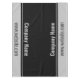 This grey and black tablecloth has a text template. There's display text for a company name and website (or a custom message) to appear twice on the tablecloth. The text is in opposite directions from the other side so that the text can be read on both sides of the table.