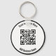 A display image is in the center. You can enter your website URL to create a custom QR code. Above and below the image, there's a line of black text you can edit to show your company name and a custom message (Shown: Scan To Learn More). The keychain has a black border.