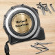 Modern tape measure for your construction, contractor, remodeling, interior design, real estate or any other business with your name in large bold typography on a brushed gold faux metal background. Add two lines of text, such as your business title, slogan or contact information.