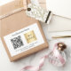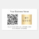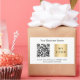 A transparent background, add your brand colour in the design tool. Personalize and add your business name, your own business logo, qr code to your website and a text. Black text.