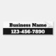 This template bumper sticker has display text you can edit to show your business name and phone number. The top is white with black text for the company name. The bottom is black with white digits for your phone number. All text can be edited or deleted.