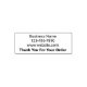 It's easy to create a custom product packaging stamp for your business. There are four lines of display text. You can edit them to show your company name, phone number, website, and a custom message. The bottom line is bold for your custom message (shown: Thank You For Your Order).