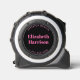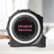 Simple and modern black tape measure for your construction, contractor, remodeling, interior design, real estate or other business featuring your name in bold hot pink typography. Add two lines of additional hot pink text, such as your business title, slogan or contact information.
