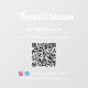Elegant custom window cling for your business featuring your name showcased in a stylish white signature script and business type in simple modern white lettering. Input your website URL address to create a QR code for customers and clients to scan for a list of your products, services, hours, etc. Add your instagram and facebook user ids for customers to follow you on social media.
