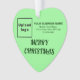 Joyeux Noël! Ornement acrylique avec des textes de voeux Joyeux Noël, votre nom d'entreprise ou d'entreprise, logo, adresse et numéro de téléphone. Les dessins sont des textes vert foncé sur arrière - plan vert clair et en forme de coeur. Ornement pour décorer le sapin de Noël dans votre magasin, magasin ou bureau. Ornement pour accueillir visuellement vos clients cette saison de vacances et pour annoncer votre entreprise ou promouvoir votre marque. Customisez-le et utilisez-le pour sensibiliser la marque. Veuillez vérifier l'apparence après avoir téléchargé le logo et tapé des textes. Si l'apparence vous plaît, vous pouvez passer votre commande maintenant. Si vous avez besoin de redimensionner et déplacer le logo et les textes pour s'adapter à cet ornement, s'il vous plaît changer dans l'outil de conception. Vous pouvez également effectuer d'autres modifications selon vos préférences dans l'outil de conception, comme changer la couleur de l'ornement, la couleur de police et le style de police. Joyeux Noël! Je vous souhaite plus de ventes cette saison des Fêtes.