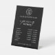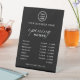 This sign features a sleek black design with clean, modern typography. The high-contrast layout makes opening hours easy to read and highly visible. The pedestal base keeps the sign stable and suitable for indoor business spaces.