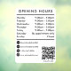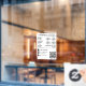 A white opening business hours window decal and window cling featuring QR Code, your custom social media icons and contact details. A personalized shop hours window cling perfect for shop windows and front door signs. Perfect for a business shop owner who would like to notify their customers about its opening hours.