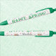Minimal festive Easter pattern background stylish typography green "Happy Spring" and ample room for business or personal script name(s) decorate this stylish black ink pen with green trim. Change the text to make it yours using the simple Template Provided. Ideal for a party favour, personalized thank you, promotional giveaway, friends and family novelty gift. Minimum purchase of 2. See "About This Product" at side for more information. Made in U.S.A.
