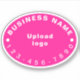 Oval shape vinyl sticker that you can customize to put your business phone number for customers or clients to easily find it when they need to call you to place their orders or ask enquiries about your products or services. You can use it as marketing material to advertise your business or to promote your brand name. You can also use it as accessory of packaging material of your product. Customizable vinyl sticker that you can use to build brand name awareness. Design colours are white texts on pink background. To customize this sticker, upload your business logo, type your business name and phone number. After uploading logo and typing texts, please check the appearance. If the appearance is pleasing to you, you can place your order now. If you need to resize and move the logo and texts to fit on this sticker or on the size that you will choose, please change in the design tool. You can also change the background colour, font colour and font style in the design tool.