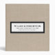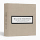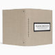 Modern business presentation portfolio book features a minimal design in neutral beige linen. Professional presentation binder with customizable information presented in simple font in a white window with a coordinating frame.