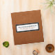Modern business presentation portfolio book features a minimal sable brown leather design. Professional presentation binder with customizable logo and information presented in simple font in a white window with a coordinating frame.
