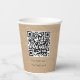A professional business QR Code and text paper cup with a kraft brown paper look background. Perfect for your business, office, corporate event, hospitality business etc.