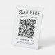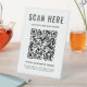 Modern tabletop pedestal sign for your business with your QR code for customers to scan for a list of your products, services and prices, to view your menu, to make contactless mobile payments, etc. Upload your QR code and add your company name, phone number, website, slogan or other information in simple typography.