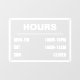 Window sign for store hours of operation. Personalize it with your shop's personal business hours.