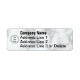 To the left, there's a display image that can be replaced with your company logo. At the top, there's a line of bold display text that can be replaced with your organization's name. Under the top line, there are three lines for your return address. The text is black. The label has a faux white marble look.