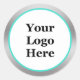You can add your company's logo to this turquoise, white, and faux silver promotional sticker. The faux silver is an artistic rendering. The product is not made of foil.