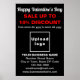 Happy Valentine’s Day! A lovely holiday to celebrate this February and to advertise also your business or to promote your brand name. Customizable poster with Valentine Sale, your business name and other information. Poster that you can use as marketing material to attract more customers. Customize it and display it to convince more customers to buy your products or clients to like your services this Valentine holiday. Design colours are red and white texts on black background. Contents are Happy Valentine’s Day greeting, sale texts with percent discount that you will offer, sale dates, your business name, logo, address, phone number, e-mail and website or your business social media page. Please check the appearance after uploading logo and typing texts. If the appearance is pleasing to you, you can place your order now. If you need to resize and move the logo and texts to fit on this poster or on the size and shape that you will choose, please change in the design tool. You can also make other changes in the design tool according to the appearance of this poster that you prefer such as changing the background colour, font colour and font style. Happy Valentine’s Day! Wishing you more sales this holiday.