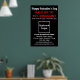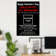 Bonne Saint Valentin ! Un beau jour férié pour célébrer ce mois de février et faire de la publicité pour votre entreprise ou pour promouvoir votre marque. Affiche personnalisable avec Valentine Sale, votre nom d'entreprise et d'autres informations. Poster que vous pouvez utiliser comme matériel marketing pour attirer plus de clients. Customisez-le et affichez-le pour convaincre plus de clients d'acheter vos produits ou clients d'aimer vos services ce jour férié Valentin. Les couleurs design sont des textes rouges et blancs sur arrière - plan noir. Les contenus sont des salutations Happy Valentine’s Day, des textes de vente avec pourcentage de réduction que vous offrirez, des dates de vente, votre nom d'entreprise, logo, adresse, numéro de téléphone, e-mail et site Web ou votre page de médias sociaux d'affaires. Veuillez vérifier l'apparence après avoir téléchargé le logo et tapé des textes. Si l'apparence vous plaît, vous pouvez passer votre commande maintenant. Si vous avez besoin de redimensionner et déplacer le logo et les textes pour s'adapter sur cette affiche ou sur la taille et la forme que vous choisirez, s'il vous plaît changer dans l'outil de conception. Vous pouvez également effectuer d'autres modifications dans l'outil de conception en fonction de l'apparence de cette affiche que vous préférez, comme changer la couleur arrière - plan, la couleur de police et le style de police. Bonne Saint Valentin ! Je vous souhaite plus de ventes ce jour férié.