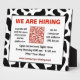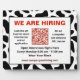 Business We Are Hiring QR Code Personalize Easel Plaque Sign is a great display sign for your business when hiring new employees. Place it on your table where it can be seen by visitors. It is colourful and inviting to look at. It will help you spread the word that you are hiring. Personalize it for your business or organization.
