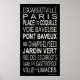Bus roll of places (some known only to Escargots) in and around Paris