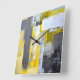 'Busy, Busy' Gray and Yellow Abstract Art Square Wall Clock
